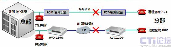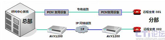 傲威通信采用AVX1200作為中心端和遠程坐席端的復(fù)接設(shè)備,采用Hotline形式,只要遠程坐席員摘機,中心端的呼叫中心交換機立刻接到摘機指令。當有呼叫到來,遠程坐席可像本地坐席一樣接聽電話,無任何差異。