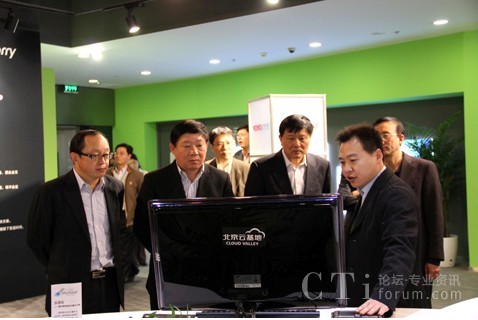 CTI論壇(ctiforum)3月29日消息(記者 潘婷婷):3月11日下午,上海市副市長艾寶俊、市經(jīng)信委主任王堅、市經(jīng)信委軟件和信息服務(wù)業(yè)處處長朱宗堯等一行人專程來北京云基地,在寬帶資本董事長田溯寧、云基地公司董事長趙安建等人的陪同下對云基地進(jìn)行了參觀和考察!CTI論壇報道