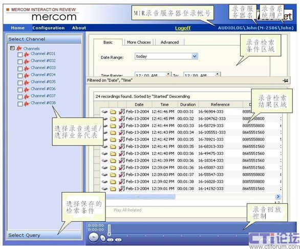 Web介面的錄音查詢及撥放功能,可以多重條件復(fù)合式查詢。
