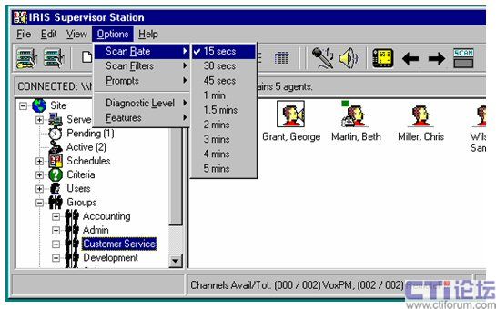 同時IRIS還可對座席工作的狀態(tài)進行分組實時監(jiān)控或監(jiān)聽、可直觀的了解的座席的狀態(tài)(離席、入席、電話中、電話待命中、已規(guī)劃中);可對座席人員進行人員跟蹤的實時監(jiān)聽。