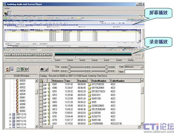 在對座席電話進行語音錄音的同時,Audiolog Screen Capture可對座席的電腦屏幕的變化及座席進行業(yè)務(wù)的操作進行同步記錄,可在回聽播放電話錄音的同時,對座席在電腦屏幕上整個業(yè)務(wù)流程進行重播。
