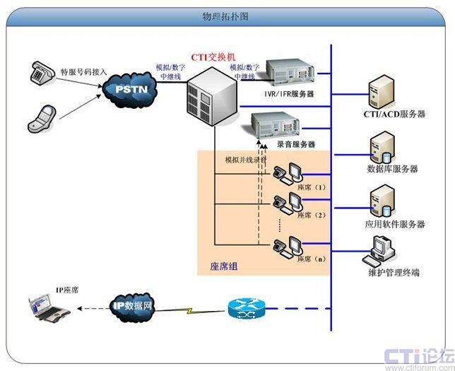 針對(duì)中大型呼叫中心項(xiàng)目的建設(shè)需求:支持大話務(wù)量呼叫、平臺(tái)靈活可靠性,可根據(jù)業(yè)務(wù)進(jìn)行靈活定制等特點(diǎn),simperfect推薦采用BasicCall呼叫中心中間件來構(gòu)建中大型的呼叫中心項(xiàng)目,可根據(jù)項(xiàng)目需求靈活選擇硬件交換機(jī)、IVR和錄音的組網(wǎng)方案。CTI論壇編輯