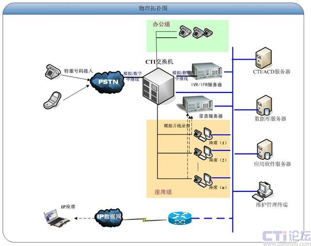 現(xiàn)在的呼叫中心建設(shè)更多是在企業(yè)中的應(yīng)用,對于企業(yè)來說,很少有單純性的座席,更多是企業(yè)辦公和呼叫中心混合的應(yīng)用,這種應(yīng)用一方面能夠最大化利用交換機,節(jié)省硬件投資;另一方面讓各部分人員溝通更便利,提高人員協(xié)同工作效率。針對這種情況,BasicCall推出辦公和交換機混合應(yīng)用方案:CTI論壇編輯