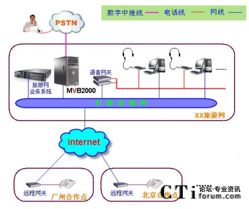 為了提高旅游網(wǎng)的客服水平、增強(qiáng)旅游網(wǎng)企業(yè)行業(yè)競爭力,依托先進(jìn)的MVB2000平臺(tái),結(jié)合 CSR2000系統(tǒng)的增值功能,暢信達(dá)通信向廣大旅游網(wǎng)企業(yè)用戶提供融合IP和語音技術(shù)的旅游網(wǎng)IP呼叫中心解決方案。