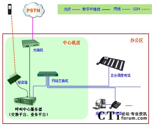 維佳元創(chuàng)呼叫中心系統(tǒng)采用暢信達(dá)通信呼叫中心交換平臺與業(yè)務(wù)平臺,采用1路E1數(shù)字中繼線接入,對外公布一個400號碼與10多個辦公電話號碼,采用IP話機(jī)作為總臺調(diào)度電話、座席電話與辦公電話,系統(tǒng)架構(gòu)形式如下:
