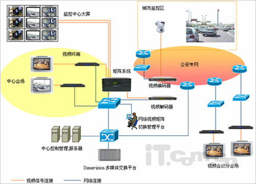 - 信息采集:主要依靠視頻監(jiān)控系統(tǒng)從應急事件現(xiàn)場采集到現(xiàn)場視頻信息及各種數(shù)據(jù)信息,將被傳輸?shù)街笓]中心,必要情況下通過視頻會議系統(tǒng)與各部門領導對事件處理進行協(xié)商。