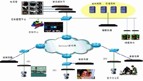 本系統(tǒng)采用數(shù)碼視訊的9000系列H.264、AVS編解碼產(chǎn)品以及EU3000系列DVS產(chǎn)品組建,系統(tǒng)的建立,用戶(hù)不需要固定的IP地址、線路,無(wú)論是身在何地都可以通過(guò)筆記本或是PC參于到視頻通訊當(dāng)中。