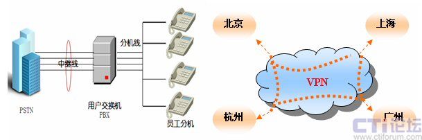 企業(yè)的傳統(tǒng)通信應(yīng)用,在語音電話方面,主要是透過傳統(tǒng)PSTN,通過中繼線連接企業(yè)交換機(jī)。數(shù)據(jù)應(yīng)用方面,分布在全國各個省市、自治區(qū)的分支機(jī)構(gòu)主要通過Internet,以E-mail方式聯(lián)絡(luò)。