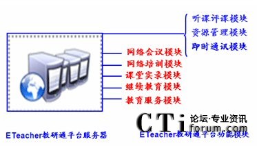 紅杉樹的“教研通”產(chǎn)品是紅杉樹根據(jù)客戶的具體情況,在自身產(chǎn)品“紅杉通”的基礎(chǔ)上,定制擴展而來,是一套適合于教育城域網(wǎng)的,集即時通訊、網(wǎng)絡(luò)會議、網(wǎng)絡(luò)培訓、課堂實錄、聽課評課、資源管理、繼續(xù)教育、教育服務(wù)等功能于一體的綜合性教育應(yīng)用系統(tǒng)(包括服務(wù)器及軟件平臺)。