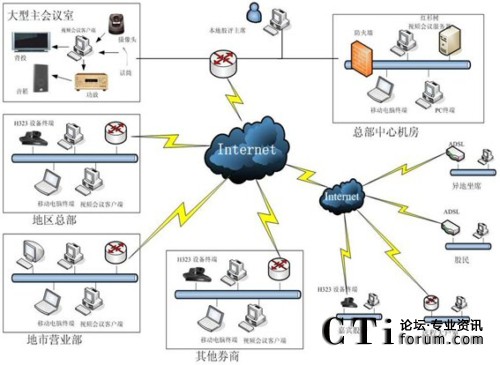 隨著全球經(jīng)濟一體化和網(wǎng)絡(luò)經(jīng)濟時代的到來,信息技術(shù)對證券業(yè)的影響越來越明顯,信息化水平的高低已經(jīng)成為證券經(jīng)營機構(gòu)競爭力的重要標(biāo)志。隨著國內(nèi)數(shù)據(jù)網(wǎng)絡(luò)的不斷完善,各證券公司在保證交易業(yè)務(wù)的前提下,大部分已經(jīng)完成了廣域網(wǎng)模式下的ISDN、DDN等多種線路組成的數(shù)據(jù)網(wǎng)絡(luò),實現(xiàn)了相互間的信息交換。但是,單純的后臺數(shù)據(jù)交換已經(jīng)不能滿足實際的應(yīng)用需求,而另一方面,傳統(tǒng)的溝通交流方式也隨著信息化程度的提高,也存在著使用成本偏高,信息傳遞速度太慢等問題。應(yīng)運而生的視頻會議系統(tǒng)正是基于現(xiàn)有的數(shù)據(jù)通信網(wǎng)絡(luò),解決了數(shù)據(jù)傳遞和信息交流無法同步實現(xiàn)的問題,為企業(yè)降低了溝通交流的成本,節(jié)省了大量的時間,提高了協(xié)同工作的效率,同時企業(yè)形象得到了提升。