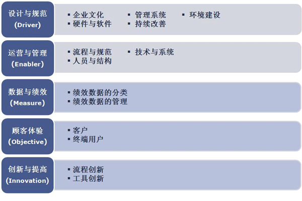 呼叫中心能力成熟度認(rèn)證涉及設(shè)計(jì)與規(guī)范、運(yùn)營與管理、數(shù)據(jù)與績效、顧客體驗(yàn)、創(chuàng)新與提高5大類,14項(xiàng)評審指標(biāo)以及若干個(gè)值得關(guān)注的管理項(xiàng)目。是一套完整的“客戶為中心”的績效管理工具。