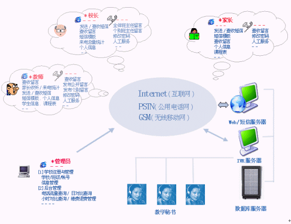 為配合教育部"校校通"工程的順利實施,深圳市潤聲信息系統(tǒng)有限公司推出的"家校直通車"系統(tǒng)(SchoolToHome),在家長和老師之間搭建起一座信息化橋梁。該系統(tǒng)經(jīng)過兩年多,以及多個地市的實施,得到了廣大老師、學(xué)生及家長的好評。