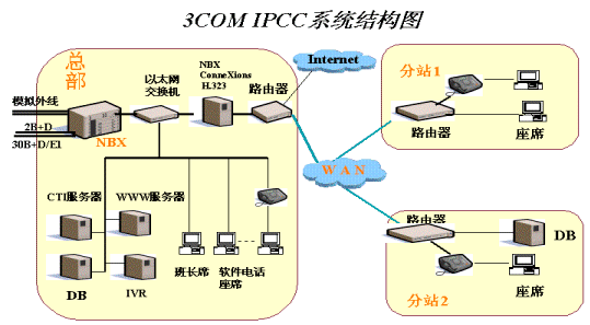 二、3Com IPCC系統(tǒng)組成結構圖: