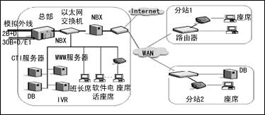 網(wǎng)音十萬元級高性能IPCC能夠在WAN/LAN內(nèi)真正實現(xiàn)全包交換技術(shù)的語音應用平臺。它包括一個基本的NBX硬件平臺單元、一臺高性能服務器及相關(guān)路由控制、呼叫管理、通用坐席應用及通用數(shù)據(jù)庫接口等軟硬件產(chǎn)品,它支持8外線、8座席的應用規(guī)模。在此平臺基礎上,系統(tǒng)擴容時只需增加相關(guān)軟件使用許可證、外線接口卡及坐席終端即可輕松將此平臺服務容量擴充至最大外線容量90端口,最大座席容量150席的應用規(guī)模。同時,此種應用解決方案對集中呼入/呼出控制,分散點多,每分散點座席數(shù)少,個點通過數(shù)據(jù)線路與接入平臺連接的分布式Call