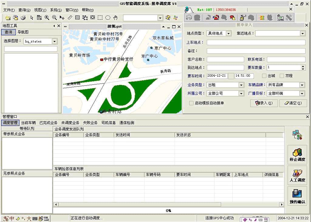 沈陽車輛調(diào)度系統(tǒng)即是采用非圖形化控件與GPS系統(tǒng)進(jìn)行結(jié)合的。界面如圖: