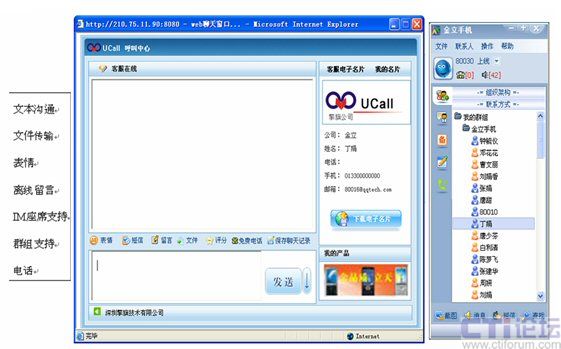 支持包括IM(即時(shí)通訊)、短信等跟語音的融合。座席人員可以同時(shí)使用IM、電話、短信等跟用戶溝通。