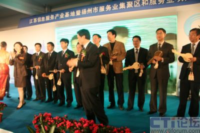 4月21日,江蘇信息服務(wù)產(chǎn)業(yè)基地暨揚(yáng)州市服務(wù)業(yè)集聚區(qū)和服務(wù)業(yè)項(xiàng)目推介洽談會在江蘇信息服務(wù)產(chǎn)業(yè)基地(揚(yáng)州)隆重召開,省信息產(chǎn)業(yè)廳副廳長龔懷進(jìn)、揚(yáng)州市委常委、常務(wù)副市長張京霞為省信息安全技術(shù)中心揭牌,中國網(wǎng)通集團(tuán)公司總工程師滕勇,神州數(shù)碼高級副總裁陳勇,上海萬得信息股份董事長陸風(fēng)等數(shù)十位集團(tuán)公司老總現(xiàn)場祝賀,同時IBM、AVAYA、優(yōu)勝資訊、神州數(shù)碼等60多家企業(yè)現(xiàn)場簽定了投資合作協(xié)議,而華潤通信、中國電信、酒店無憂、漢世紀(jì)等10家企業(yè)則從廣陵區(qū)委書記孔令俊手中接過了入駐金鑰匙,成為首批入駐江蘇信息服務(wù)產(chǎn)業(yè)基地的企業(yè),至此江蘇信息服務(wù)產(chǎn)業(yè)基地迎來首發(fā)項(xiàng)目招商的“開門紅”,江蘇信息服務(wù)產(chǎn)業(yè)基地也因此被業(yè)界冠以中國首家專業(yè)定位信息呼叫和數(shù)據(jù)處理產(chǎn)業(yè)的“中國聲谷”的美譽(yù)。 “江蘇信息服務(wù)產(chǎn)業(yè)基地(揚(yáng)州)”位于廣陵新城內(nèi),為省信息產(chǎn)業(yè)廳與揚(yáng)州市政府聯(lián)手打造的中國首家專業(yè)定位于呼叫信息和數(shù)據(jù)處理產(chǎn)業(yè)的省級信息服務(wù)業(yè)基地,占地2.52平方公里,總投資50億元,處于揚(yáng)州ECBD核心區(qū)域,交通便捷,區(qū)位優(yōu)勢獨(dú)特,生態(tài)環(huán)境優(yōu)美。基地按照“產(chǎn)業(yè)社區(qū)”的標(biāo)準(zhǔn)和“商務(wù)公園”的理念規(guī)劃建設(shè),重點(diǎn)發(fā)展信息服務(wù)產(chǎn)業(yè)及具有揚(yáng)州特色的城市信息化應(yīng)用軟件和嵌入式軟件產(chǎn)業(yè),立足長三角、面向全國、服務(wù)世界,逐步發(fā)展成為全國乃至世界呼叫中心產(chǎn)業(yè)最佳實(shí)踐基地、全國生產(chǎn)性服務(wù)業(yè)的標(biāo)桿示范基地及呼叫中心人才培訓(xùn)與派遣基地。