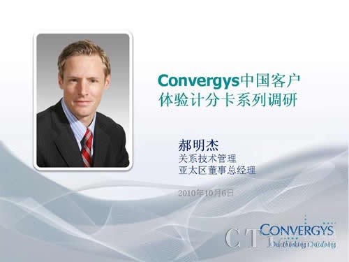CTI論壇(ctiforum)12月16日消息(記者 楊毅):關(guān)系管理領(lǐng)域的全球領(lǐng)袖Convergys今日在CTI論壇獨(dú)家發(fā)布了“傾聽(tīng)中國(guó)客戶的心聲”為主題的“2010年中國(guó)客戶體驗(yàn)計(jì)分卡研究”成果視頻,在該視頻中,Convergys 亞太區(qū)董事總經(jīng)理 Benjamin Hart-郝明杰以實(shí)際、具體的數(shù)字和圖表向大家進(jìn)行全面的視頻展示。