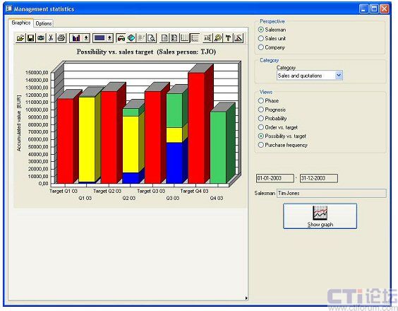 使企業(yè)用戶可以獲得與銷售相關(guān)的主要信息的圖形化視圖。通過該方案能夠簡化機(jī)會和管道管理,由此可獲得銷售和營銷成果的即時概況,同時可以提供銷售和營銷經(jīng)理與其團(tuán)隊之間的有效協(xié)作。企業(yè)可通過系統(tǒng)建立和監(jiān)視銷售單位中每個成員的銷售目標(biāo),并可以快速方便地瀏覽或修改該目標(biāo),能夠快捷地獲得季度或年度目標(biāo)的即時概況,并且使用直觀的圖形化圖表顯示這些關(guān)鍵數(shù)據(jù)和數(shù)據(jù)趨勢。管理層還可以對銷售歷史的任意時間段中的銷售人員相關(guān)的收入和支出、盈利和虧損數(shù)據(jù)進(jìn)行分析和比較。