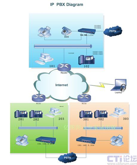 PBX接入網(wǎng)絡就意味著您的分支機構(gòu)能夠完全拋棄PSTN直接通話。在此我們建議您使用專線接入方式并在分支機構(gòu)間建立VPN已保證更好的通話質(zhì)量和網(wǎng)絡安全性。