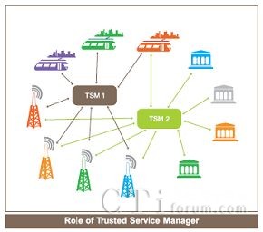 可信服務管理 (TSM)為復雜的、有眾多參與者的NFC生態(tài)系統(tǒng)帶來的穩(wěn)定性及可預見性。其核心作用是分配和管理各個服務提供商的應用。它是移動運營商、銀行和公交公司的一個共同的聯絡點。對移動NFC應用進行安全下載和生命周期管?尚欧⻊展芾肀仨氌A得參與各方的信任才能完成這一任務。