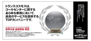 作為信息處理外包產(chǎn)業(yè)的先驅(qū),transcosmos公司于1966年正式開始了自己的業(yè)務(wù)。從此以后,我們?nèi)诤喜⑤敵鋈瞬排c技術(shù),提供高附加值的外包服務(wù),致力于增強(qiáng)客戶公司的競(jìng)爭(zhēng)力。現(xiàn)已拓展到12000多人的規(guī)模,是日本最大和最著名的外包客戶互動(dòng)服務(wù)供應(yīng)商之一。目前在專業(yè)技術(shù)支持領(lǐng)域?yàn)榱腥毡镜谝弧?br />