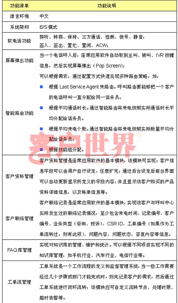 呼叫中心是企業(yè)和客戶互動的溝通平臺,要真正有效管理客戶服務,優(yōu)化客戶服務處理流程,座席應用軟件是呼叫中心建設的關(guān)鍵,座席應用軟件與企業(yè)后臺各個業(yè)務系統(tǒng)有機結(jié)合,處理包括業(yè)務咨詢、信息查詢、投訴建議、業(yè)務受理等呼入業(yè)務,以及客戶回訪、滿意度調(diào)查、電話營銷和派工等呼出業(yè)務。