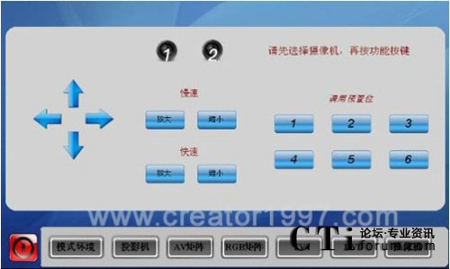 CTI論壇(ctiforum)1月25日消息(記者 潘婷):在業(yè)務(wù)不斷攀升的同時(shí),廣東移動(dòng)公司對(duì)培訓(xùn)直播室也進(jìn)行了進(jìn)一步的提升,采用了CREATOR快捷的中控系統(tǒng)和矩陣系列產(chǎn)品,其中,中控設(shè)備是CREATOR快捷PGMII型高端中央控制可編程主機(jī),通過(guò)無(wú)線真彩觸摸屏ST-7600C作為控制媒介,主要控制了矩陣、投影機(jī)、DVD、攝像機(jī)等外圍設(shè)備,對(duì)整個(gè)會(huì)議室實(shí)現(xiàn)有線全智能人性化控制。通過(guò)對(duì)矩陣進(jìn)行控制切換信道,實(shí)現(xiàn)了多個(gè)電腦會(huì)議信號(hào)的快速轉(zhuǎn)換和AV信號(hào)的切換。矩陣采用了8*4的RGB矩陣和8*4的AV矩陣,可以方便的對(duì)電腦信號(hào)和AV信號(hào)進(jìn)行簡(jiǎn)單的切換。通過(guò)紅外發(fā)射棒對(duì)DVD和攝像機(jī)進(jìn)行控制,體現(xiàn)了多媒體控制系統(tǒng)的優(yōu)越性,本系統(tǒng)還通過(guò)攝像跟蹤的原理來(lái)實(shí)現(xiàn)教室直播的錄制。