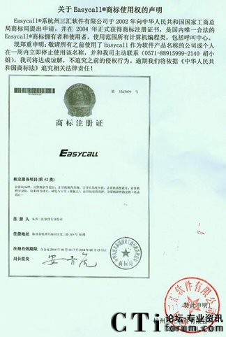 CTI論壇(ctiforum)07月31日消息: 近日,杭州三匯軟件有限公司就Easycall®商標(biāo)使用權(quán)作出聲明,聲明全文如下:CTI論壇報道