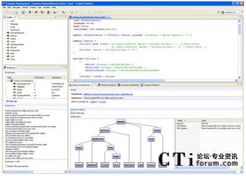 這里強(qiáng)調(diào)的Eclipse插件,除了本身作為優(yōu)秀工具,還提供了附加于Eclipse工作臺(tái)內(nèi)的順暢互操作性:你可以一邊看著對(duì)應(yīng)呼叫者輸入的對(duì)話(huà)流程,一邊檢查和完成語(yǔ)音識(shí)別語(yǔ)法;你也可以一邊構(gòu)建連接后臺(tái)的Web服務(wù)代碼,一邊通過(guò)簡(jiǎn)單地拖放來(lái)調(diào)整應(yīng)用邏輯。開(kāi)發(fā)者首次擁有了對(duì)所有應(yīng)用方面的同時(shí)控制,無(wú)須在不同IDE之間進(jìn)行切換,或者在選擇單一環(huán)境時(shí)在特性上的折衷。