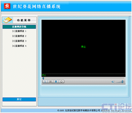 選擇網(wǎng)頁中左邊菜單“其它”下載播放器并安裝好以便接收直播的界面。