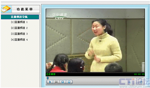 先在直播系統(tǒng)里啟動設(shè)置好的01號頻道,其他教師就可以在各自辦公室通過計算機(jī)網(wǎng)絡(luò)觀看遠(yuǎn)教節(jié)目,不需淘神費力地到專門的接收室了。如下圖: