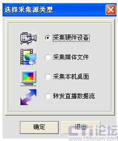 我們是利用電視卡來進(jìn)行遠(yuǎn)教衛(wèi)星電視節(jié)目的校園網(wǎng)絡(luò)實時直播,因此選擇“采集硬件設(shè)備”項,進(jìn)入硬件設(shè)置,如下圖: