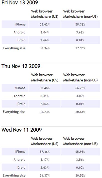 首款A(yù)ndroid 2.0智能手機(jī)摩托羅拉Droid在美國(guó)上市剛剛一個(gè)星期,不過這款CDMA手機(jī)贏得了極大的歡迎,其銷量很快就超過了同時(shí)發(fā)布的HTC Droid Eris。根據(jù)11月12日的統(tǒng)計(jì)數(shù)據(jù),摩托羅拉Droid已經(jīng)占據(jù)了美國(guó)全部移動(dòng)網(wǎng)絡(luò)流量的2.84%。網(wǎng)絡(luò)流量統(tǒng)計(jì)數(shù)據(jù)