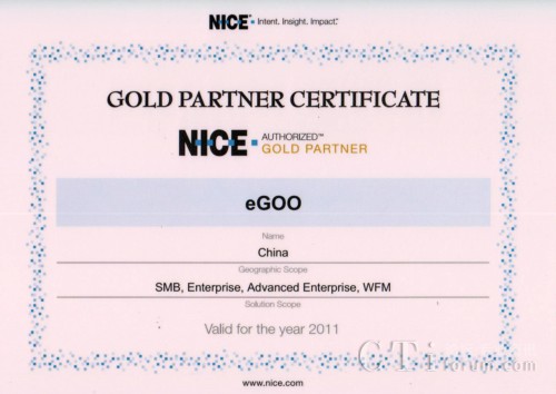 CTI論壇(ctiforum)4月19日報道(記者 潘婷婷):日前,易谷獲得由NICE頒發(fā)的“金牌合作伙伴”證書。CTI論壇報道