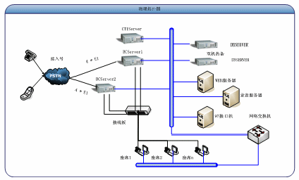 近年來,通訊業(yè)正經(jīng)歷著前所未有的變革和發(fā)展。隨著寬帶的普及、3G的發(fā)展、固話ARPU值的進一步萎縮,眾多專網(wǎng)通信企業(yè)正經(jīng)歷著規(guī)?s小、話費流失之痛,其發(fā)展正面臨著前所未有的挑戰(zhàn)。為了更好的發(fā)展、爭取更大的利潤空間,專網(wǎng)企業(yè)逐漸利用自身在業(yè)務內(nèi)容上的優(yōu)勢,走有企業(yè)自身特色的通訊服務之路。系統(tǒng)結(jié)構(gòu)圖