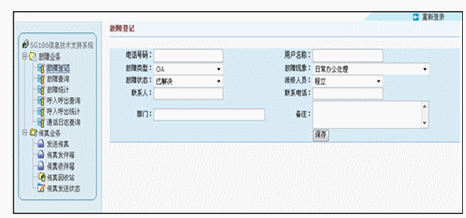 在故障受理方面,該系統(tǒng)同樣出色。它可以建立統(tǒng)一的語音受理號碼和建立網(wǎng)站,方便用戶通過語音和電腦雙途徑進行故障申報。而出色的無紙收發(fā)傳真功能更是方便使用者通過網(wǎng)絡用軟件的方式發(fā)送傳真或查詢接收到的傳真文件。