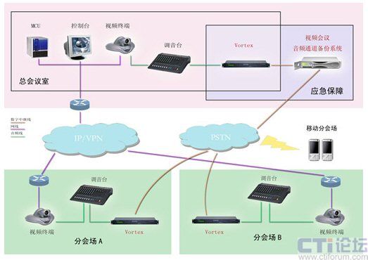 反應(yīng)迅速,確保會議正常召開:視頻會議過程中,出現(xiàn)任何故障,用戶可一鍵迅速切換至備份系統(tǒng)。系統(tǒng)即刻通過PSTN網(wǎng)傳輸?shù)臅h語音,利用已有的音箱、麥克等傳入和傳出會場,確保會議語音正常召開。