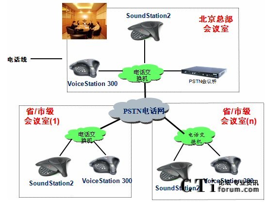 根據(jù)客戶的要求,本著“完善、經(jīng)濟(jì)、高效”的原則,我們制定了以下解決方案;系統(tǒng)利用傳統(tǒng)電話網(wǎng)絡(luò),擁有自己的會(huì)議管理系統(tǒng);北京總部方面使用Polycom
