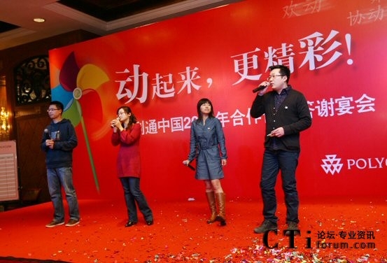 CTI論壇(ctiforum)2月22日消息(記者 袁青): 2009年月12月30日下午,寶利通“動起來、更精彩”主題年會在北京國航萬麗酒店隆重召開,直真信通公司代表與寶利通(中國)全體員工以及中國區(qū)合作伙伴歡聚一堂,共饗盛典。在這里大家一同度過了4個多小時的快樂時光。除了美食之外,更多的是享受了一場視聽盛宴。寶利通這支勇打勝仗的大隊伍,表演了自編自演的節(jié)目,內(nèi)容豐富多彩,堪稱一場民間春晚!CTI論壇報道