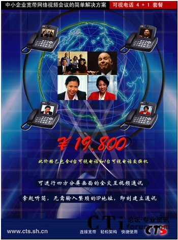 CTS致力于為企業(yè)和個人提供寬帶網(wǎng)絡(luò)音頻、視頻、數(shù)據(jù)的實時溝通服務(wù),立足于提供寬帶網(wǎng)絡(luò)通訊傳輸服務(wù)。通過CTS對產(chǎn)品的市場重定位和宣傳推廣,將產(chǎn)品包裝成為基于互聯(lián)網(wǎng)的各種應(yīng)用及服務(wù),從而使企業(yè)和個人可以享受CTS服務(wù)給工作和生活所帶來的實惠和便利。