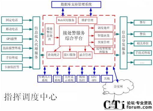 利用有線、無線通信或計算機網(wǎng)絡,通過話音通信、數(shù)據(jù)通信實現(xiàn)處警命令的下達,可以實現(xiàn)一警多處,多部門協(xié)調出警。