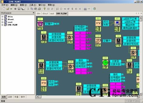 根據(jù)對(duì)客戶應(yīng)用系統(tǒng)的需求分析,列出您需要的提示音、信號(hào)音、函數(shù)以及變量,并且用流程生成器生成相應(yīng)的提示音表、信號(hào)音表、函數(shù)表和和變量表。這些表在應(yīng)用系統(tǒng)運(yùn)行過(guò)程中為CTISERVER 程序提供正確的信息。