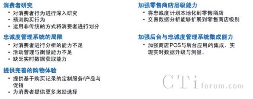 基于微軟Dynamics CRM,HCL結(jié)合其在消費(fèi)行業(yè)15年的忠誠度管理專業(yè)知識,歷時兩年開發(fā)零售行業(yè)客戶關(guān)系管理解決方案EmpoweRetail。EmpoweRetail將CRM、忠誠度管理和消費(fèi)者分析相結(jié)合,最大限度地提升用戶對客戶生命周期的管理能力,幫助用戶提升業(yè)務(wù)收益。EmpoweRetail的應(yīng)用框架具有高度可擴(kuò)展性,它的數(shù)據(jù)分析能夠支持對時間、客戶群、店鋪、產(chǎn)品等多維度的層次分析,支持與POS/店鋪系統(tǒng)的實時網(wǎng)絡(luò)數(shù)據(jù)交換。CTI論壇編輯