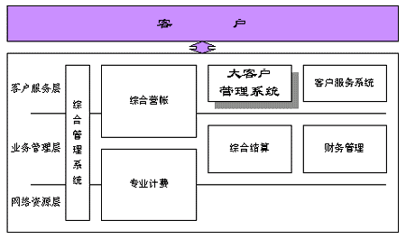下圖顯示的即為大客戶管理系統(tǒng)在電信綜合業(yè)務(wù)支撐系統(tǒng)中的位置: