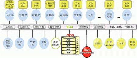 建立在ODS基礎(chǔ)上的ODS+EAI框架為整個公共安全應(yīng)急指揮系統(tǒng)提供基礎(chǔ)架構(gòu),通過該框架不僅可以交換并緩存數(shù)據(jù)信息,同時可以交換和記錄調(diào)度命令,通過數(shù)據(jù)采集構(gòu)建信息數(shù)據(jù)基礎(chǔ),記錄并歸檔事件處理過程,維護和利用預(yù)案處理過程。同時該框架也為我們建議的本地或遠程OEM系統(tǒng)、甚至是移動的OEM系統(tǒng)提供有力的技術(shù)和數(shù)據(jù)支撐。