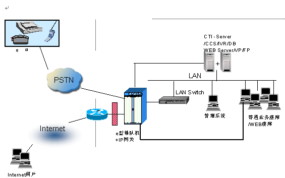 。。華為的INtess®-e型多媒體呼叫中心產(chǎn)品,是集成了交換機(jī)和計(jì)算機(jī)網(wǎng)絡(luò)的系統(tǒng),根據(jù)國(guó)內(nèi)各經(jīng)營(yíng)服務(wù)行業(yè)的業(yè)務(wù)特點(diǎn)和發(fā)展趨勢(shì),以及華為公司對(duì)國(guó)內(nèi)電子商務(wù)發(fā)展的深刻理解,以充分理解和貼近用戶(hù)需求為設(shè)計(jì)、開(kāi)發(fā)理念推出的高集成度的小型呼叫中心平臺(tái)。