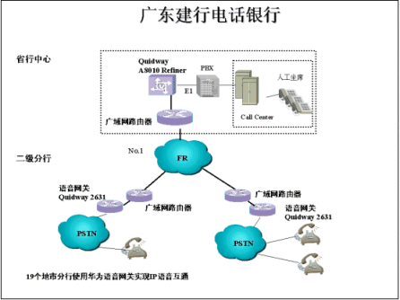 Center,其中珠海、揭陽、韶關、肇慶、梅州、陽江、潮州、云浮、河源、汕尾分行在華為2631上加8路Voice Gateway模塊提供8路話音接入,東莞、佛山、茂名、汕頭、清遠、中山、惠州、江門、湛江利用在華為2631上增加30路Voice