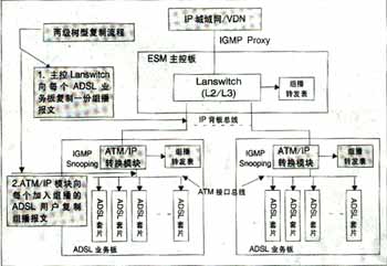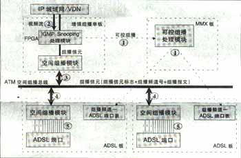可實(shí)現(xiàn)高效的兩級(jí)組播。基于空間總線上的組播信元技術(shù)實(shí)現(xiàn),與組播用戶數(shù)無關(guān),同一節(jié)目即使所有用戶加入該頻道,僅需復(fù)制一份,不用逐個(gè)用戶復(fù)制到每個(gè)用戶端口,極大節(jié)省了背板帶寬,減輕IP上行負(fù)擔(dān)?蓪(shí)現(xiàn)高性能硬件組播轉(zhuǎn)發(fā)。IP上行板采用超大規(guī)模FPGA硬件邏輯處理組播報(bào)文,ADSL板采用空間組播處理硬件芯片自動(dòng)完成向每個(gè)ADSL端口(用戶)的組播復(fù)制,每ADSL端口組播帶寬6M。