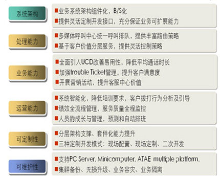 從服務(wù)內(nèi)容來看,聯(lián)絡(luò)中心建立了一個統(tǒng)一面向客戶的綜合性服務(wù)平臺,實現(xiàn)涵蓋公司各項主要產(chǎn)品和業(yè)務(wù)的專業(yè)信息咨詢與交易功能,并實現(xiàn)人工服務(wù)、業(yè)務(wù)咨詢、業(yè)務(wù)處理、投訴處理、建議受理、預(yù)約服務(wù)、客戶回訪等一體化的話務(wù)處理與管理,為客戶提供多樣化、全方位、個性化的接入方式與服務(wù)內(nèi)容。
